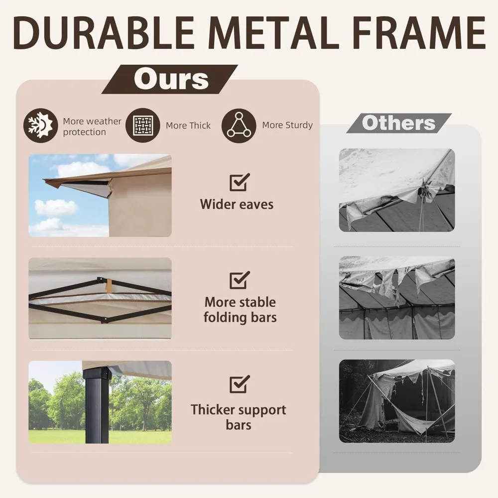 - Enhanced Ventilation:Our gazebo with mosquito netting keep cool and comfortable with the 350D double roof design for improved airflow. The gazebo also includes four removable mosquito nets with two-sided zippers, allowing for easy access and complete protection from pesky. Stay relaxed, no matter where you are