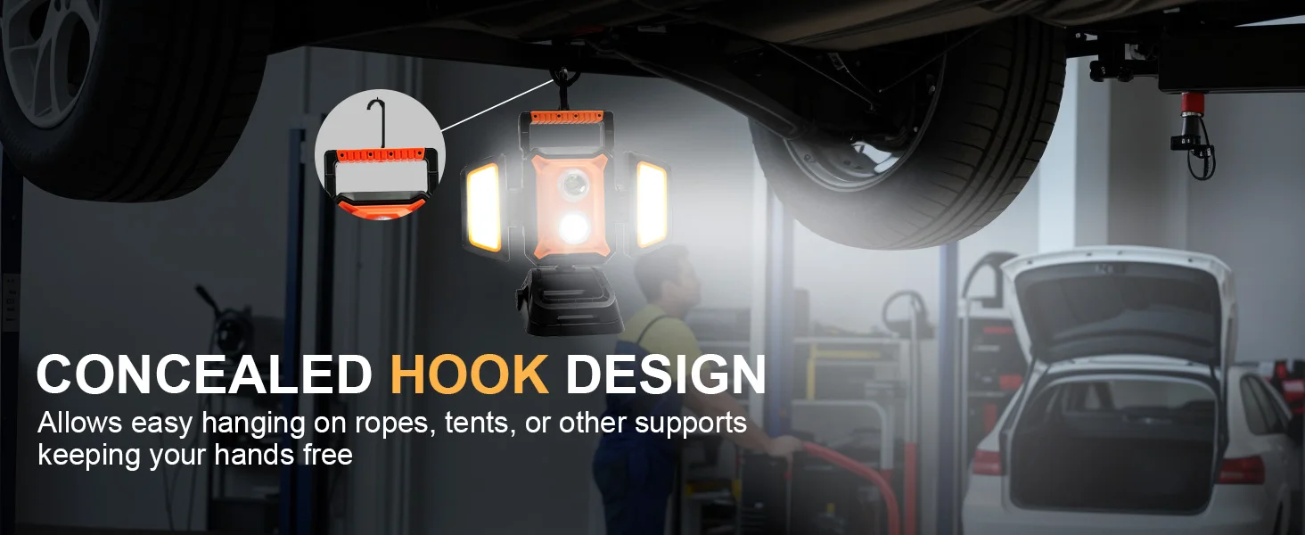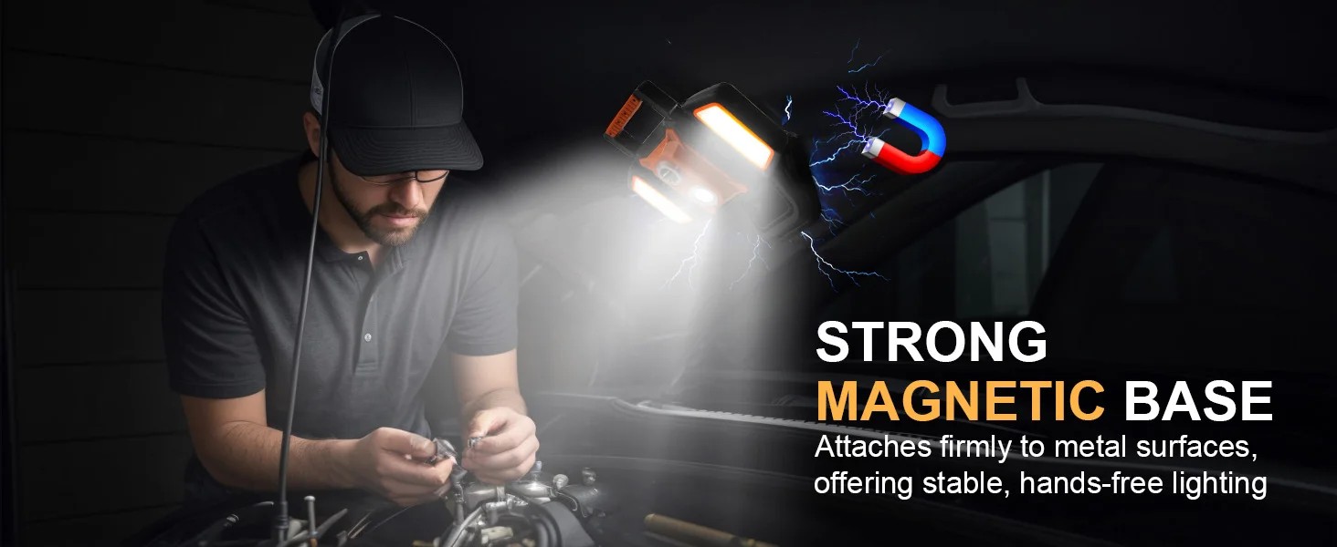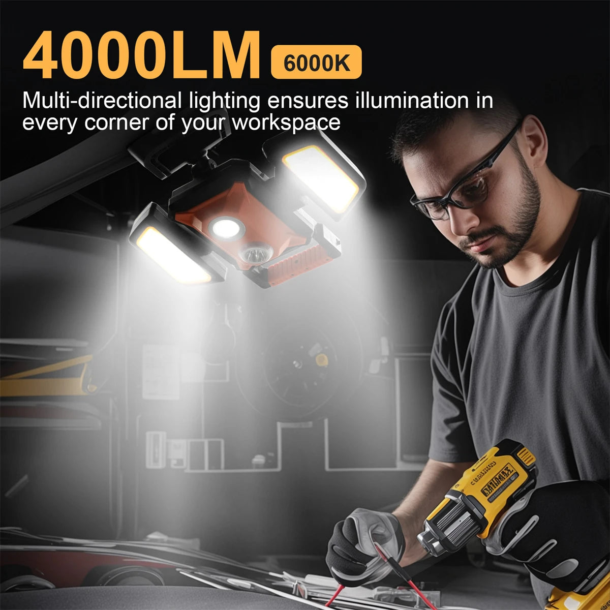 4000LM Magnetic & Clamp LED Work Light Rechargeable,4400mAh Portable FloodLight with 5 Modes,For Workshop, Car Repair,Emergency