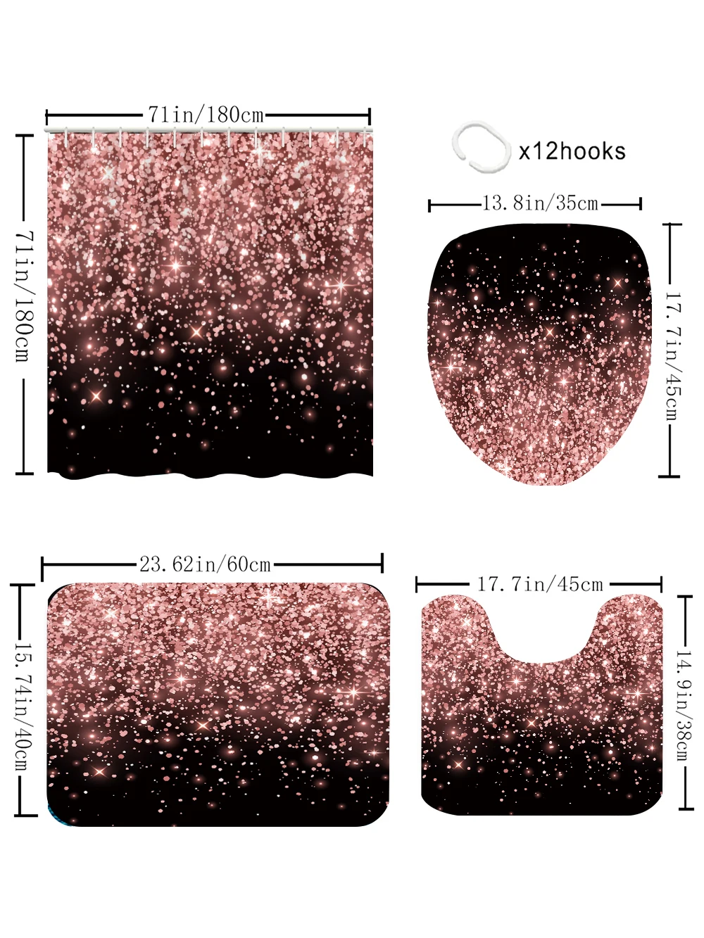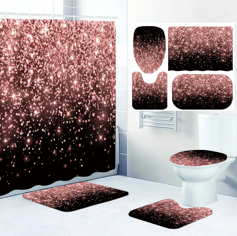 4pc black and pink shower curtain, 2D Flat Printing. Bathroom partition curtain, home decoration, modern home window