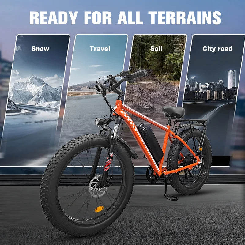 - Reach new trails and urban routes with a 1000W motor and rugged 26×4 inch fat tires that grip mud, gravel, and sand.