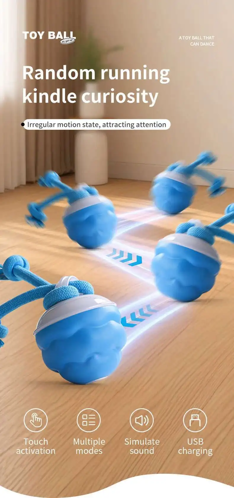 Interactive Dog Toys Smart Rolling Ball With Rope Motion Activated Automatic Moving Squeaky Dog Training Puppy Chew Toy Balls