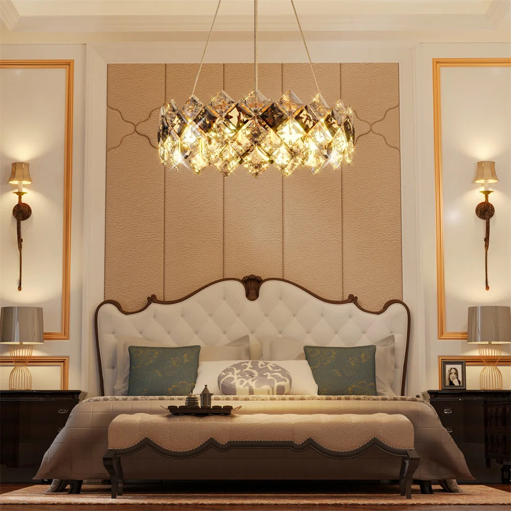 - Luxurious water chestnut crystals, precisely cut for multi-angle sparkle, create a dramatic, timeless focal point that elevates spaces from modern to classic.