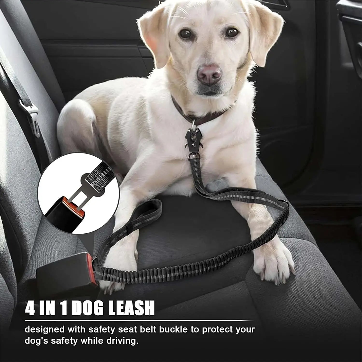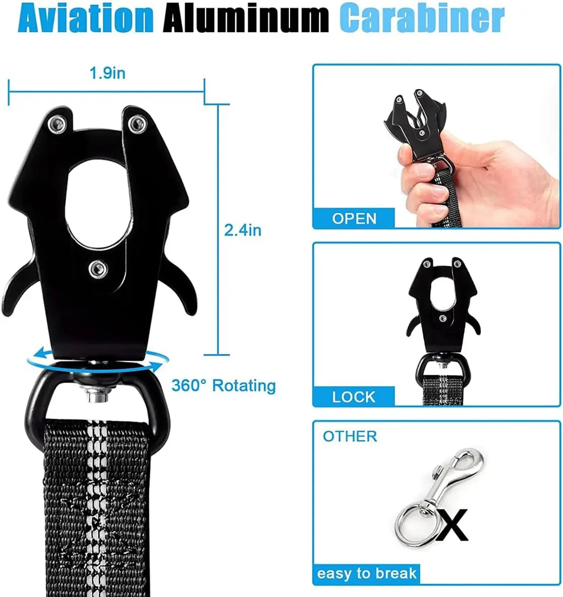 Reflective Shock Absorbing Tactical Dog Leash With Car Seatbelt