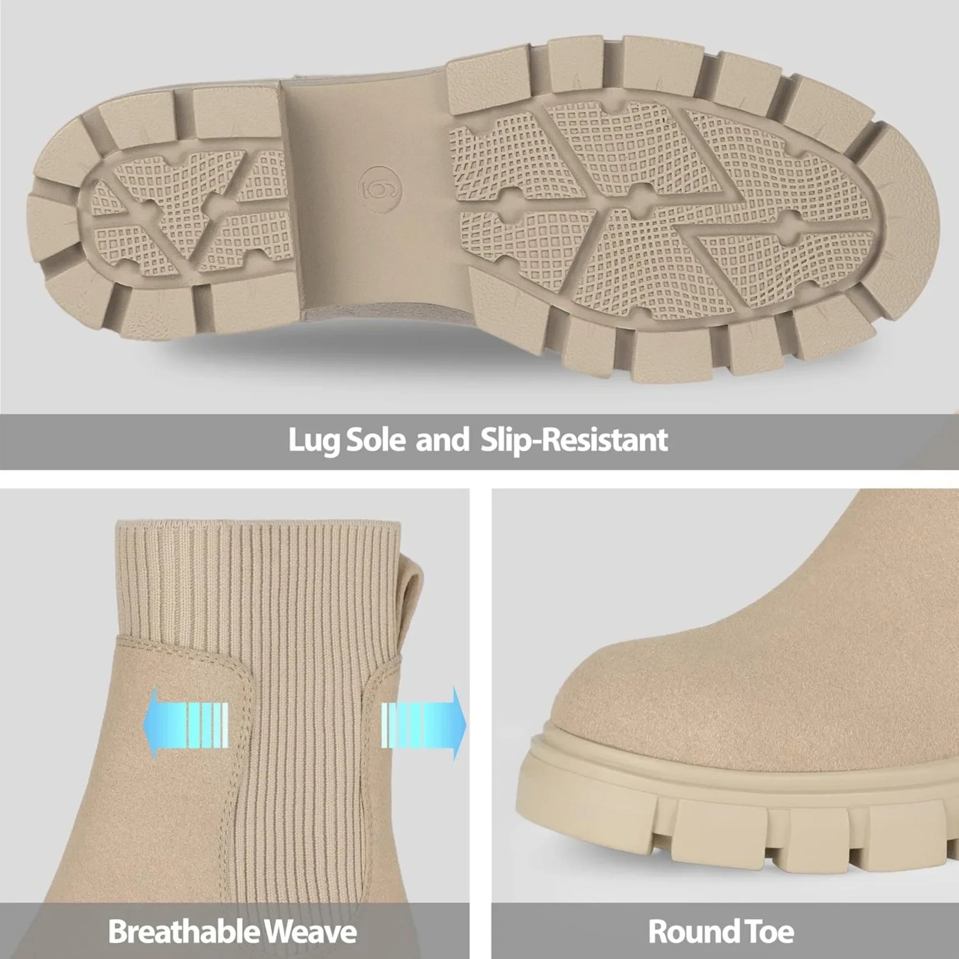 Women's Chelsea Boots Slip On Platform Lug Sole Booties